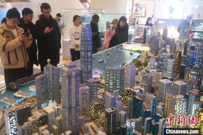 图为微型艺术展览现场的“维多利亚港”景观吸引参观者。中新网记者周毅摄